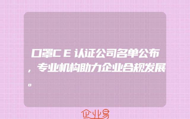 - 口罩CE认证公司名单公布,专业机构助力企业合规发展。