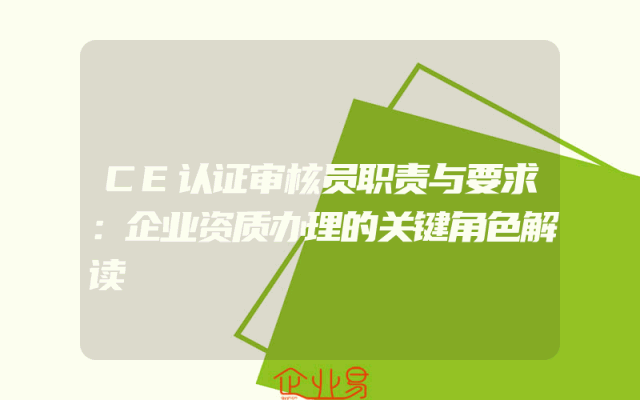 - CE认证审核员职责与要求:企业资质办理的关键角色解读