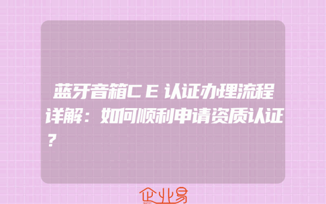 - 蓝牙音箱CE认证办理流程详解:如何顺利申请资质认证?