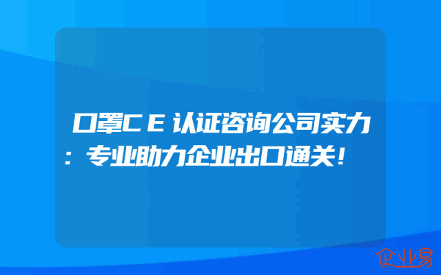 - 口罩CE认证咨询公司实力解析:专业助力企业出口通关一、引言在全球化的背景下,企业出口已经成为推动经济发展的重要力量。对于口罩行业而言,要想在欧洲市场立足,CE认证是不可或缺的一环。此时,专业的口罩CE认证咨询公司的作用便凸显出来,他们凭借丰