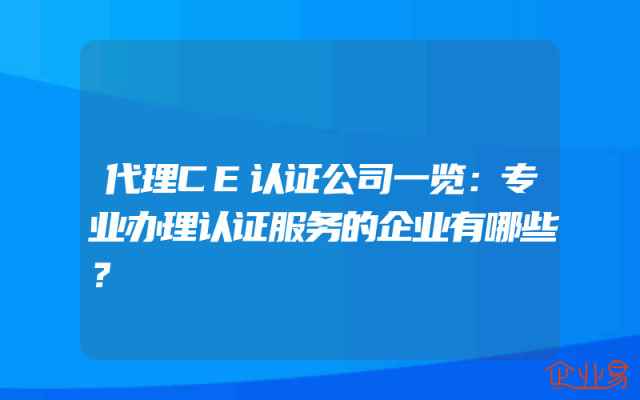 - 代理CE认证公司一览:专业办理认证服务的企业有哪些?