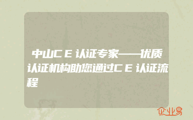 - 中山CE认证专家——优质认证机构助您通过CE认证流程