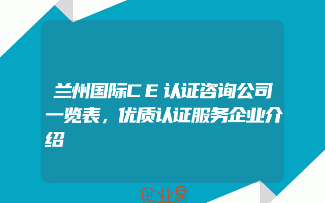 - 兰州国际CE认证咨询公司一览表,优质认证服务企业介绍