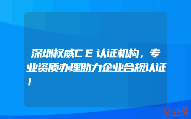 - 深圳权威CE认证机构:专业资质办理助力企业合规认证一、深圳CE认证机构的权威地位在深圳这座充满活力和创新精神的城市中,有一家权威的CE认证机构,致力于为企业提供专业、高效的资质办理服务。该机构拥有深厚的行业背景和丰富的经验,能够为企业提供全