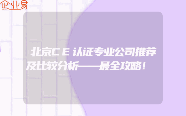 - 北京CE认证专业公司推荐及比较分析——最全攻略!