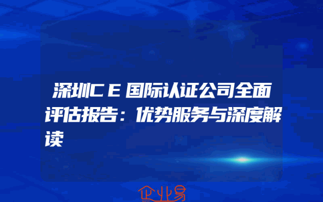 - 深圳CE国际认证公司全面评估报告:优势服务与深度解读