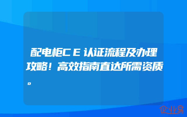 - 配电柜CE认证流程及办理攻略!高效指南直达所需资质。