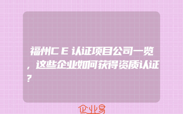 - 福州CE认证项目公司一览,这些企业如何获得资质认证?