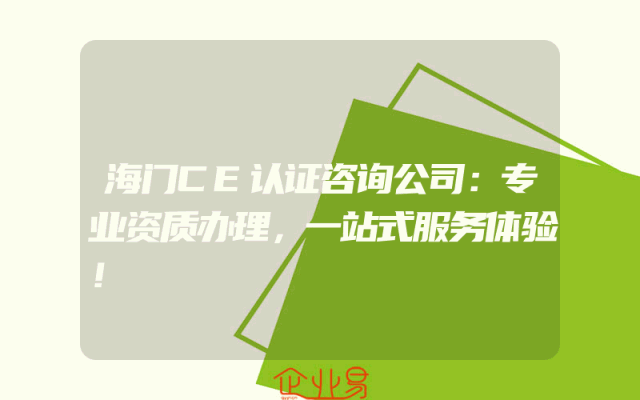 - 海门CE认证咨询公司:专业资质办理,一站式服务体验!一、引言在当今竞争激烈的市场环境中,企业为了提升自身竞争力,不断追求质量和服务水平的提升。作为专业的企业服务行业从业者,海门CE认证咨询公司深知企业对于资质办理和认证服务的需求。二、专业资