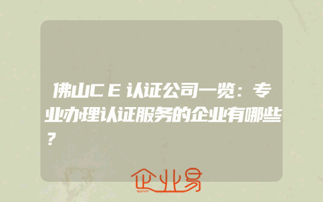 - 佛山CE认证公司一览:专业办理认证服务的企业有哪些?