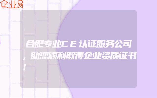 - 合肥专业CE认证服务公司,助您顺利取得企业资质证书!