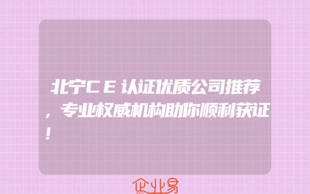 - 北宁CE认证优质公司推荐,专业权威机构助你顺利获证!