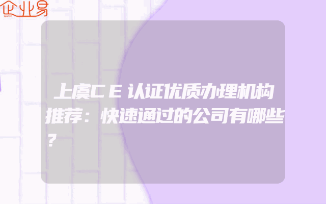 - 上虞CE认证优质办理机构推荐:快速通过的公司有哪些?