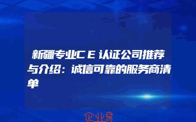 - 新疆专业CE认证公司推荐与介绍:诚信可靠的服务商清单