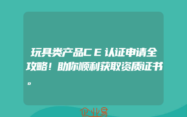 - 玩具类产品CE认证申请全攻略!助你顺利获取资质证书。