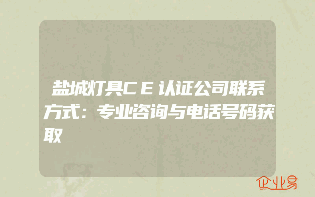 - 盐城灯具CE认证公司联系方式:专业咨询与电话号码获取