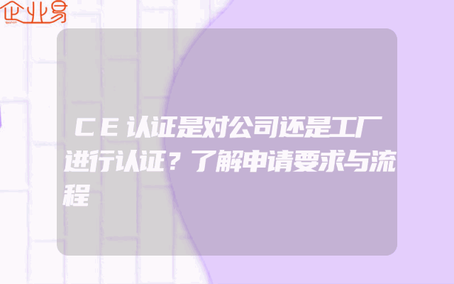 - CE认证是对公司还是工厂进行认证?了解申请要求与流程
