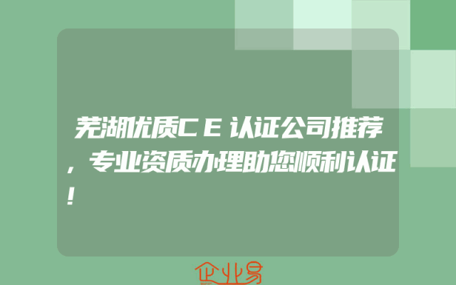 - 芜湖优质CE认证公司推荐,专业资质办理助您顺利认证!