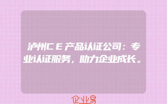 - 泸州CE产品认证公司:专业认证服务,助力企业成长。