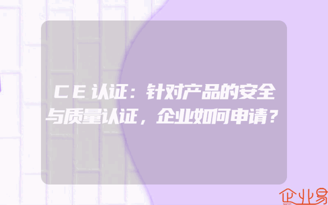 - CE认证:针对产品的安全与质量认证,企业如何申请?