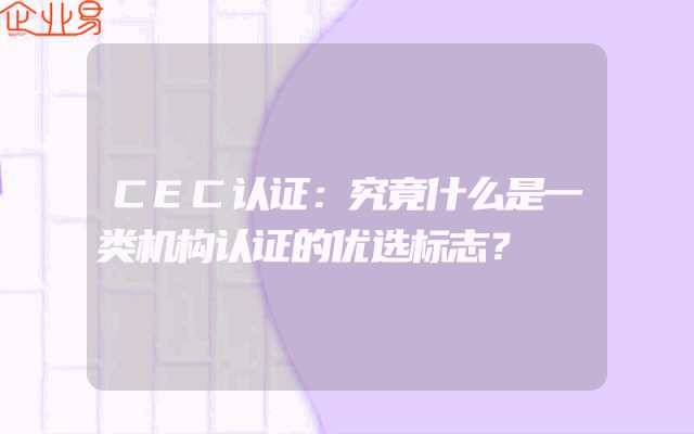 - CEC认证:究竟什么是一类机构认证的优选标志?