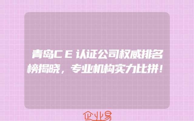 - 青岛CE认证公司权威排名榜揭晓,专业机构实力比拼!