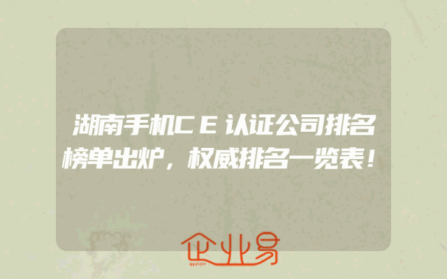 - 湖南手机CE认证公司排名榜单出炉,权威排名一览表!