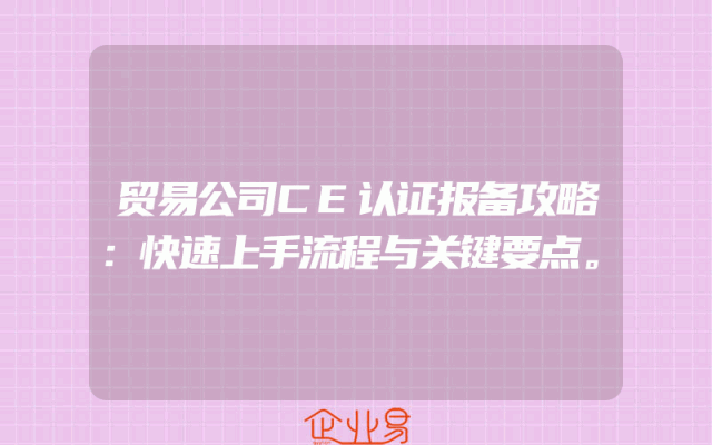 - 贸易公司CE认证报备攻略:快速上手流程与关键要点。