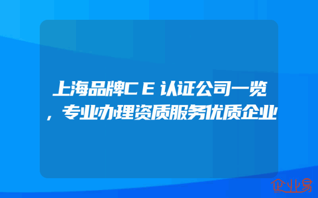 - 上海品牌CE认证公司一览,专业办理资质服务优质企业