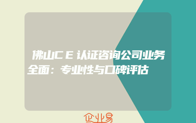 - 佛山CE认证咨询公司业务全面:专业性与口碑评估