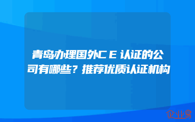 - 青岛办理国外CE认证的公司有哪些?推荐优质认证机构
