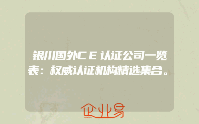 - 银川国外CE认证公司一览表:权威认证机构精选集合。
