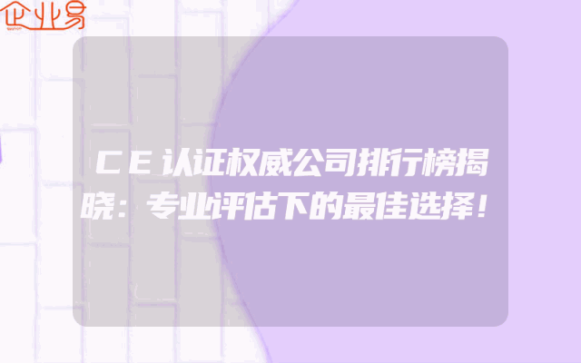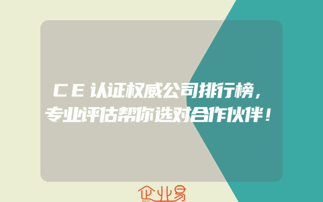- CE认证权威公司排行榜,专业评估帮你选对合作伙伴!