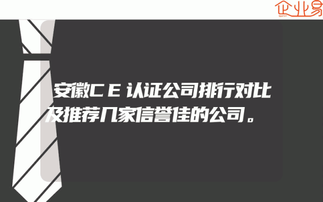 - 安徽CE认证公司排行对比及推荐几家信誉佳的公司。