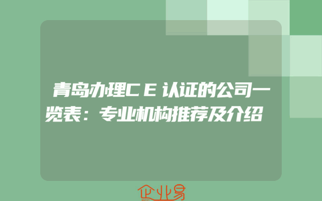 - 青岛办理CE认证的公司一览表:专业机构推荐及介绍
