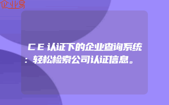 - CE认证下的企业查询系统:轻松检索公司认证信息。