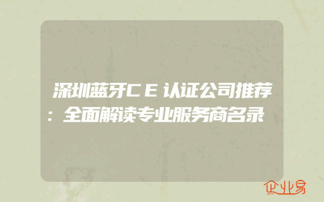 - 深圳蓝牙CE认证公司推荐:全面解读专业服务商名录