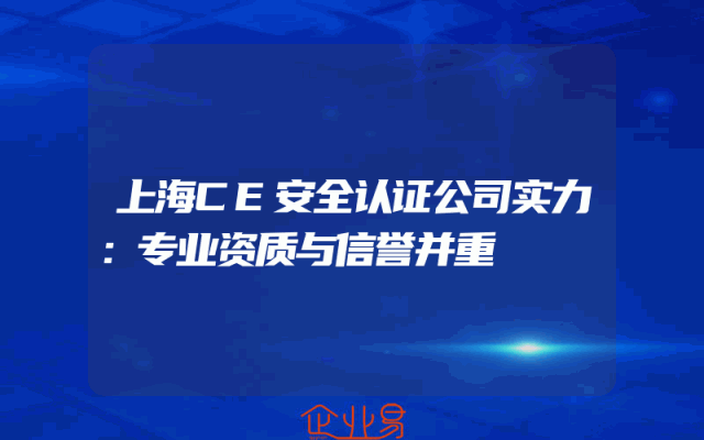 - 上海CE安全认证公司实力:专业资质与信誉并重