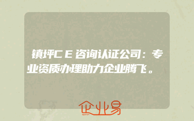 - 镇坪CE咨询认证公司:专业资质办理助力企业腾飞。