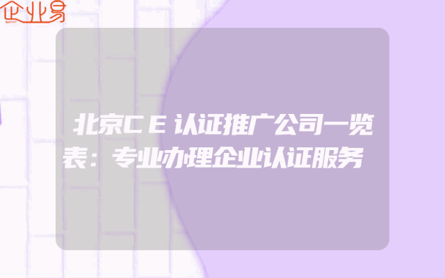 - 北京CE认证推广公司一览表:专业办理企业认证服务