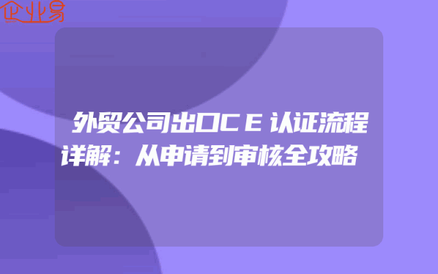 - 外贸公司出口CE认证流程详解:从申请到审核全攻略了解CE认证的重要性在欧盟市场,CE认证是产品合法进入的必备条件。对于外贸公司而言,要想顺利出口产品到欧洲,就必须了解CE认证的流程和要点。CE认证不仅