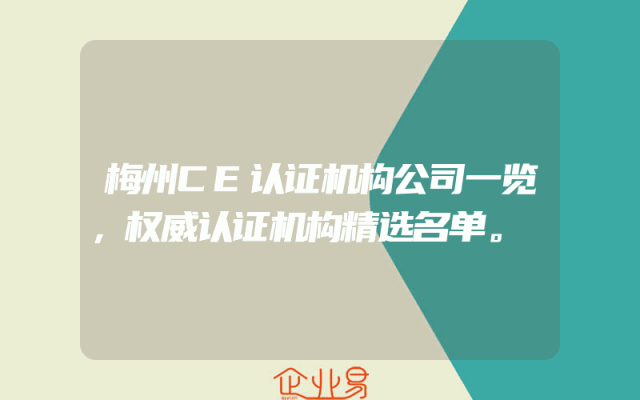 - 梅州CE认证机构公司一览,权威认证机构精选名单。