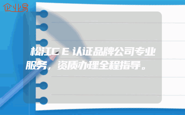 - 松江CE认证品牌公司专业服务,资质办理全程指导。