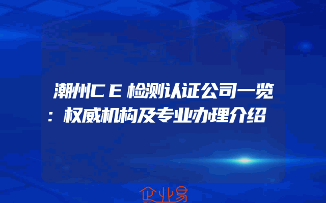 - 潮州CE检测认证公司一览:权威机构及专业办理介绍