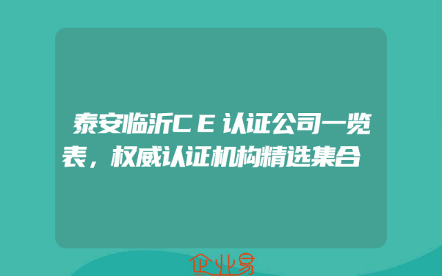 - 泰安临沂CE认证公司一览表,权威认证机构精选集合