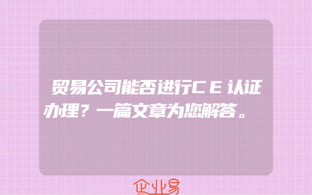 - 贸易公司能否进行CE认证办理?一篇文章为您解答。