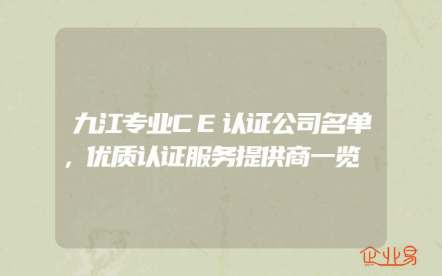 - 九江专业CE认证公司名单,优质认证服务提供商一览