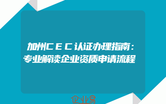 - 加州CEC认证办理指南:专业解读企业资质申请流程
