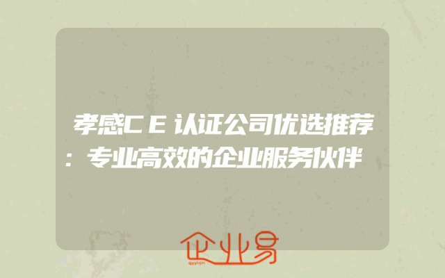 - 孝感CE认证公司优选推荐:专业高效的企业服务伙伴