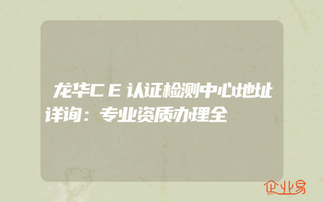 - 龙华CE认证检测中心地址详询:专业资质办理全